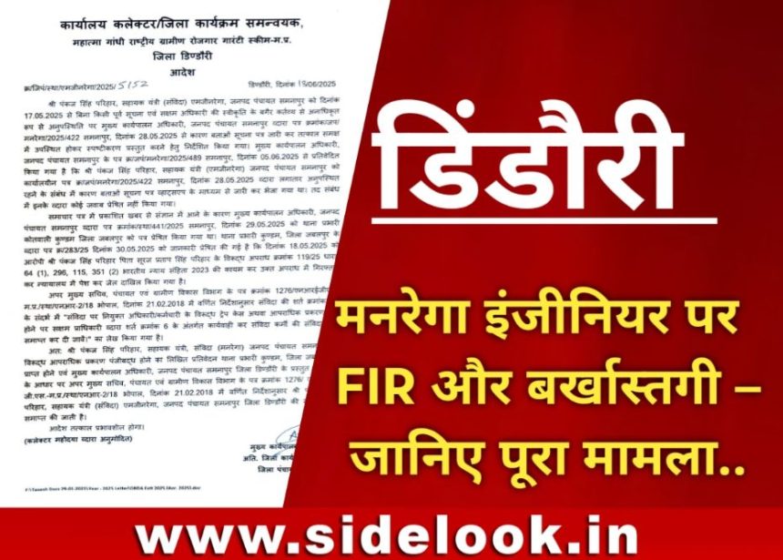 डिंडौरी,राठौर रामसहाय मर्दन।महात्मा गांधी राष्ट्रीय ग्रामीण रोजगार गारंटी योजना (मनरेगा) के तहत जनपद पंचायत समनापुर में संविदा पर पदस्थ सहायक यंत्री पंकज सिंह परिहार को सेवा से बर्खास्त कर दिया गया है। यह निर्णय उनके विरुद्ध दर्ज आपराधिक प्रकरण एवं जेल भेजे जाने के बाद लिया गया है।