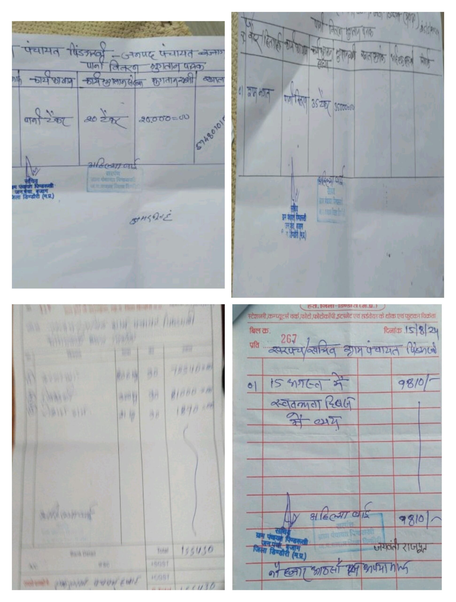 बता दें कि ग्राम पंचायत पिंडरूखी में सरपंच अहिल्या बाई और सचिव सुरेन्द्र कुमार मार्को के द्वारा पानी वितरण के नाम पर बिना जीएसटी नंबर के बिलों में 91 हजार का मनमानी तरीके से भुगतान किया गया है, जबकि कुल पानी वितरण का ग्राम पंचायत को प्रस्ताव पारित कर मात्र 30 प्रतिशत भुगतान करने का प्रावधान है,बावजूद जिम्मेदारों के द्वारा 91000 रू का भुगतान 3 सप्लायरों को किया गया है,जिसमें रामफल वासपे को 18 हजार रू. देवरत को 35 हजार रू. अमरसिहं मटेरियल सप्लायर को 20 हजार रू. और 18 हजार रू बिना जीएसटी नंबर के बिलों में भुगतान किया गया है, जिन सप्लायरों को सरपंच ,सचिव के द्वारा भुगतान किया गया है,वे जीएसटी धारक है उनको भी बिना जीएसटी नंबर के सादा कागजों के बिलों में भुगतान किया गया है। जिससे आप अनुमान लगा सकते हैं कि किस तरह शासकीय राषि का दुरूपयोग करने में अमादा है।