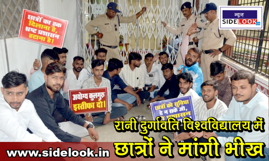 साईडलुक, जबलपुर। भारतीय राष्ट्रीय छात्र संगठन (NSUI) ने रानी दुर्गावती विश्वविद्यालय में छात्रों की सुविधाओं में कटौती के विरोध में अनोखा प्रदर्शन किया। छात्रों ने हाथों में कटोरे लेकर भीख मांगकर अपना विरोध जताया।